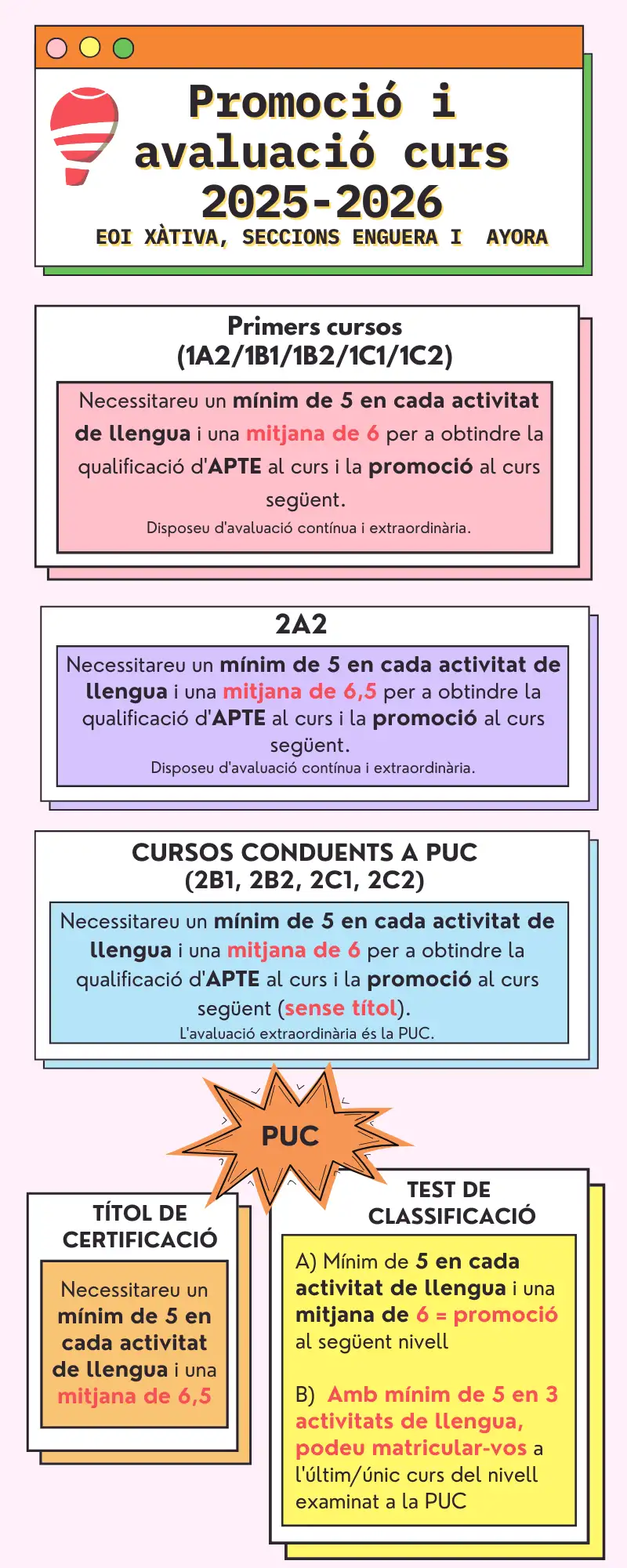 En el botó que trobareu a continuació podeu llegir l’orde d’avaluació, també teniu una infografia amb un resum de l’avaluació i promoció.