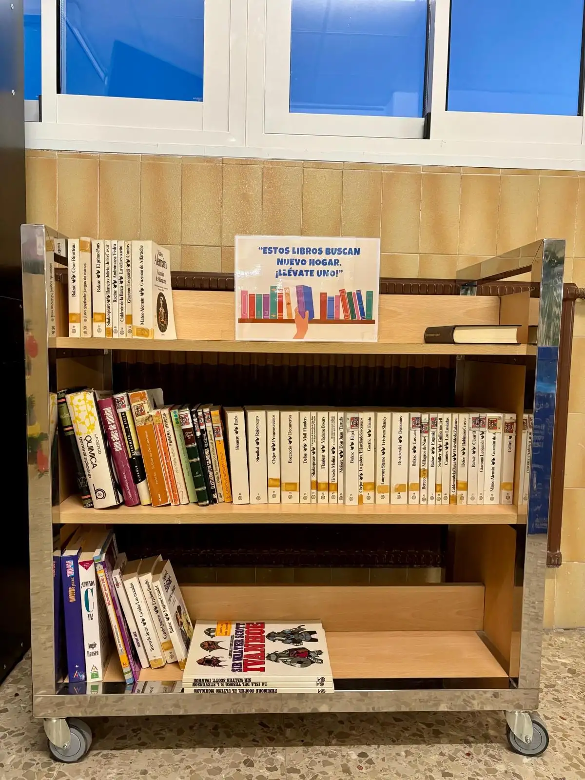 En la entrada del centro, os espera un carro de libros de segunda mano que buscan hogar. ¡Llévate uno y dale una nueva oportunidad!