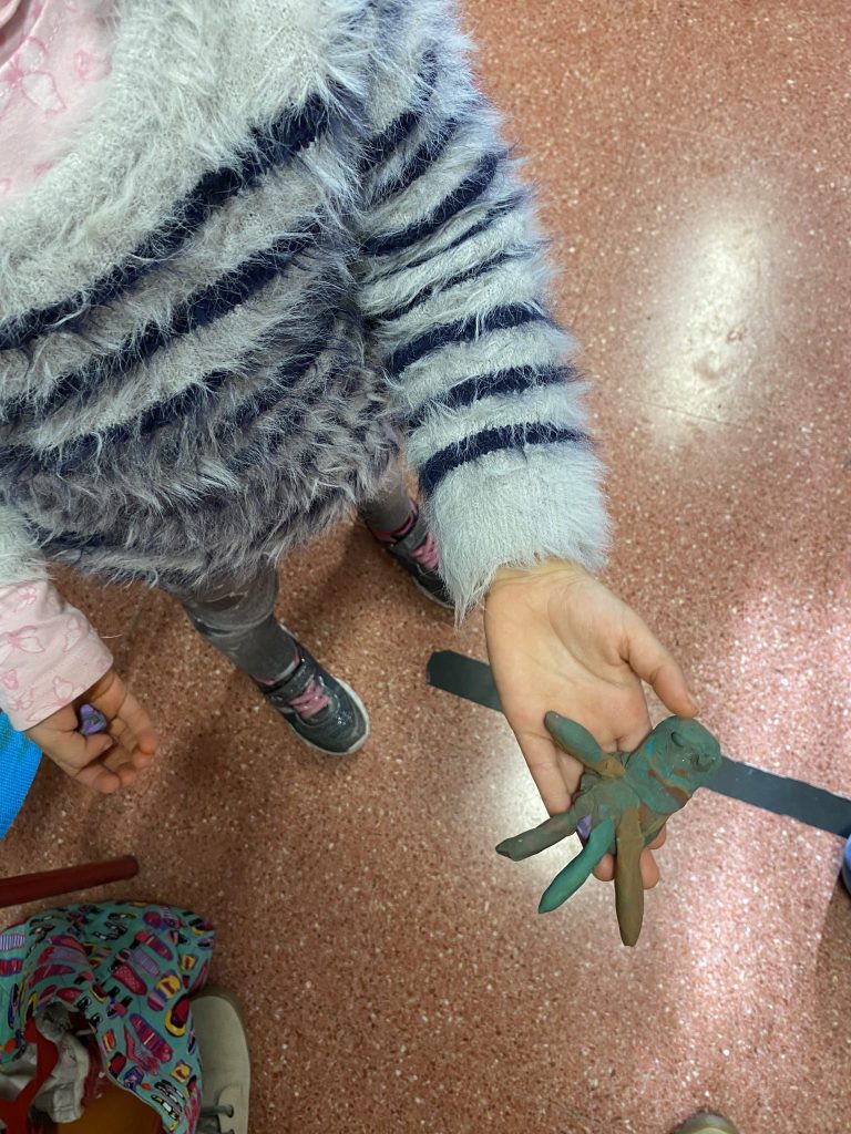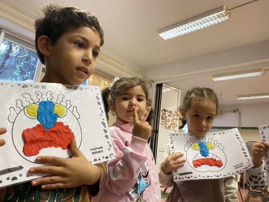 To support this, we have done different activities, such as drawing, using playdough to build a monster face or to create our own body while the teacher guides us practicing our listening skill. It is very important to work on this content across every subject at this level in order to develop our proprioception and body awareness.