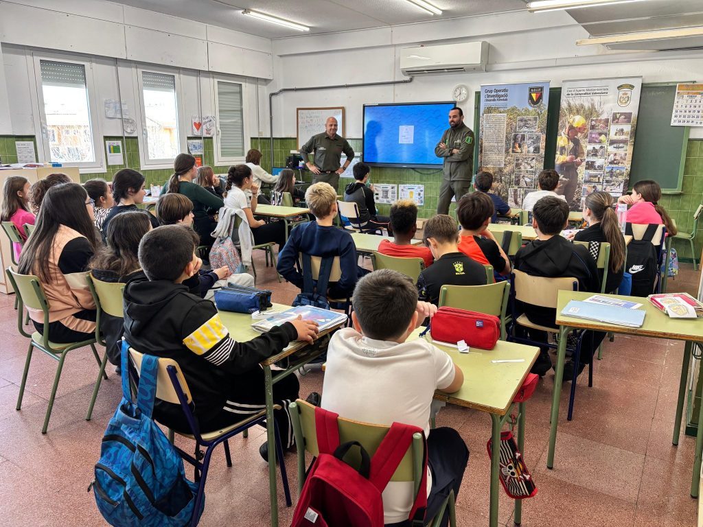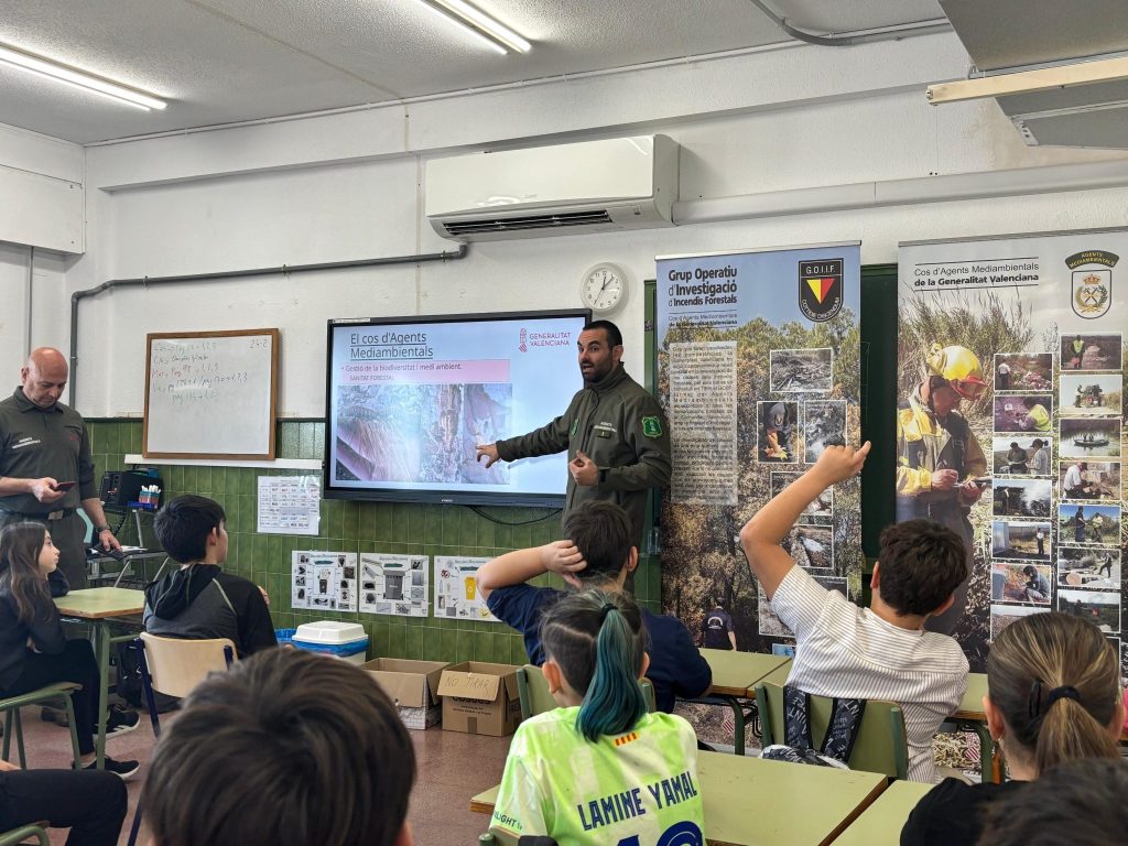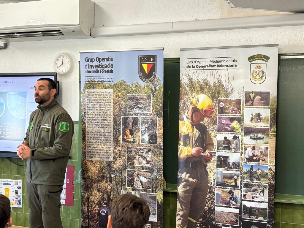 Visita de los agentes medioambientales Vicent i Pau que les han informado de los diferentes equipos y sus tareas y las causas, la actuación después de los incendios y cómo prevenirlos.