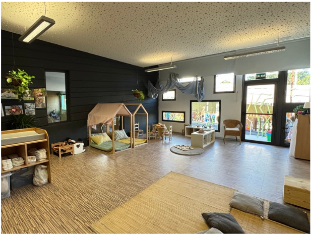 Nuestro centro cuenta con cinco aulas: dos de un año y dos de dos años. Disponemos de calefacción miedo suelo radiante para el invierno y aire acondicionado para el verano. Nuestras aulas son amplias, son aulas versátiles y cambiantes al desarrollo del grupo. El aula es, en palabras de Loris Malaguzzi, «El tercer maestro», ya que permite las condiciones necesarias para retar a cada infante con los recursos materiales y el mobiliario que se va proponiendo. Todas las aulas disponen de mobiliario para el movimiento. Cada aula dispone de su aseo que se adecuado a su edad. Las aulas comunican entre sí miedo una puerta corredera y a través de un patio interior.