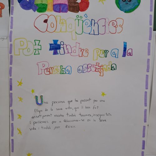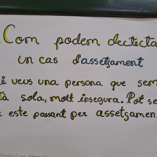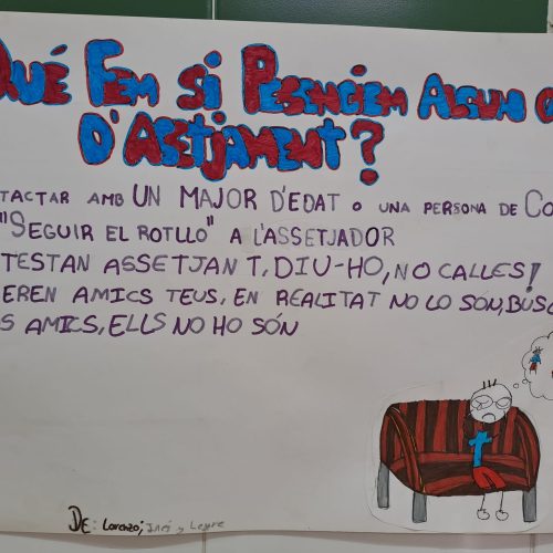 En este proyecto, el alumnado ha trabajado en equipos cooperativos y ha elaborado un cartel informativo sobre el acoso escolar, en el que han analizado las diferentes medidas para conseguir el objetivo. El producto final, es decir, la exposición oral del trabajo de los equipos ha sido grabada en formato vídeo.