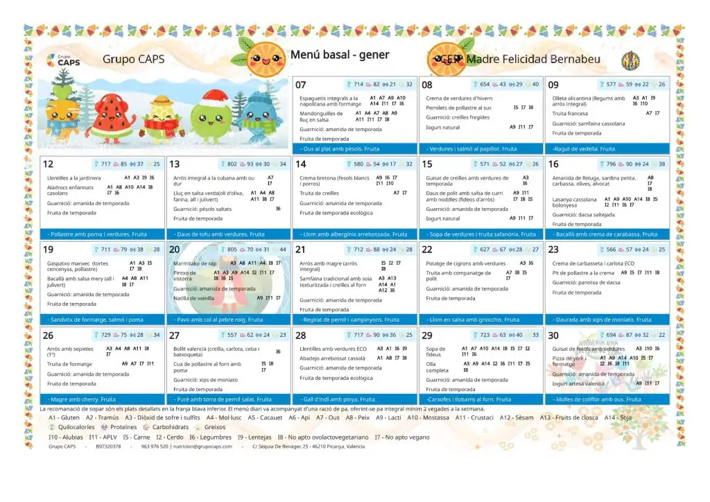 INFORMACIÓ MENJADOR El servici de menjador comença el primer dia de curs i finalitza l'últim. En la pestanya "Documents de menjador" es poden descarregar tots els documents necessaris per a la inscripció, així com per a informar els responsables davant qualsevol circumstància. El preu d'un menú ordinari és de: 4'35€. Es pot contactar amb el centre per a qualsevol dubte de la manera següent: - Telèfon: 96 652 75 55 96 652 75 57 - Correu electrònic: 03010004@edu.gva.es