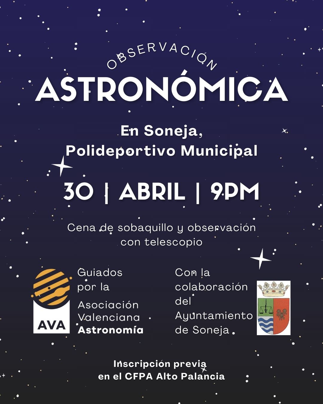 - 24/04/25. Observación astronómica en Soneja el 30 de abril. CANCELADA.