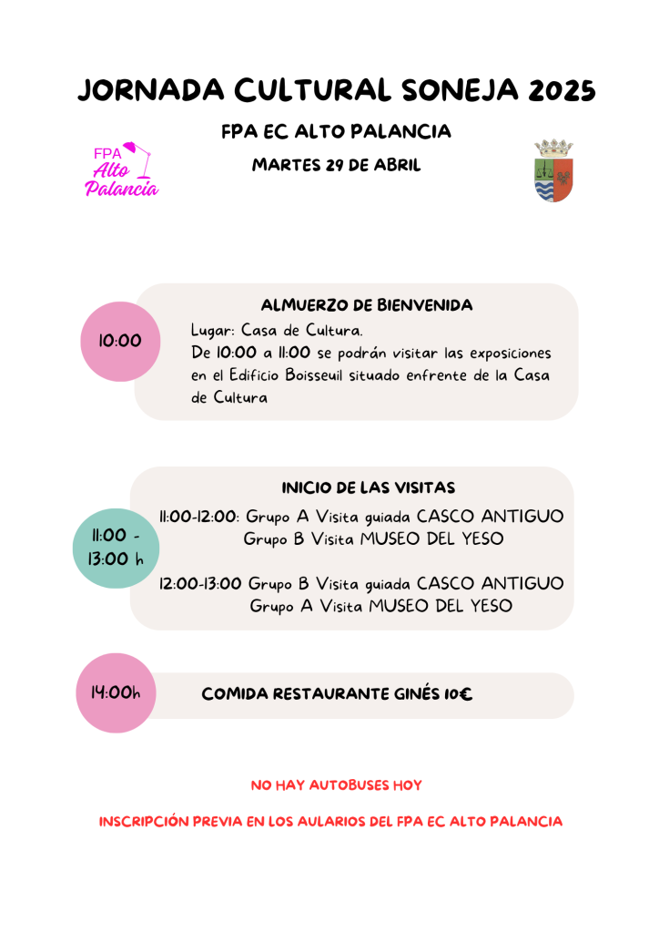 🔸 El ayuntamiento de Segorbe y el CFPA Alto Palancia pondremos autobuses desde Altura, Castellnovo, Caudiel, Cárrica, Segorbe, Soneja y Viver.