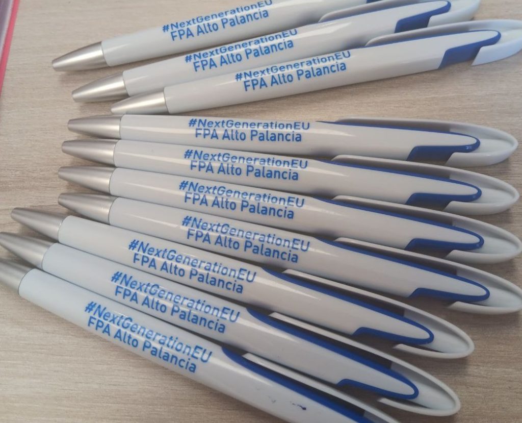 Con los fondos de la Unión Europea-NextGenerationEU hemos impreso estos 1000 marcapáginas y 500 bolígrafos. ¡Acuérdate de pedirlos cuando te matricules!
