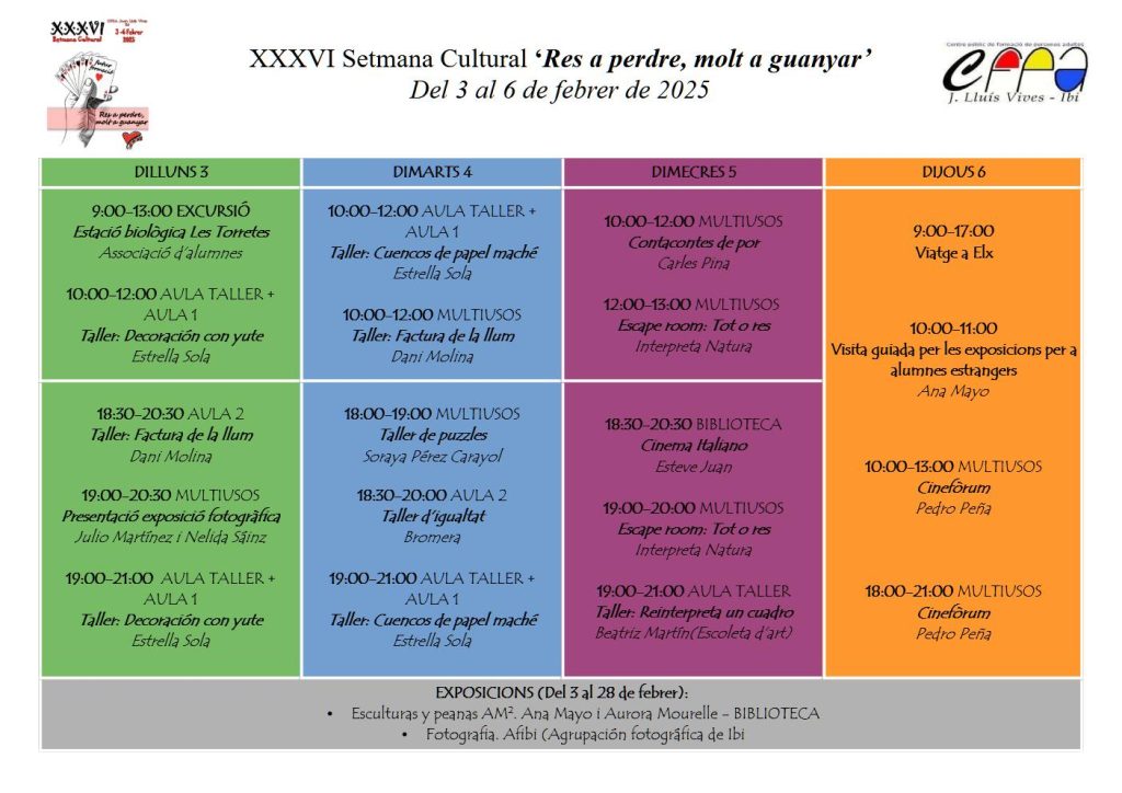 Un any més celebrem la setmana cultural al CFPA Joan Lluís Vives! Us esperem a totes i tots amb les portes i els braços ben oberts!