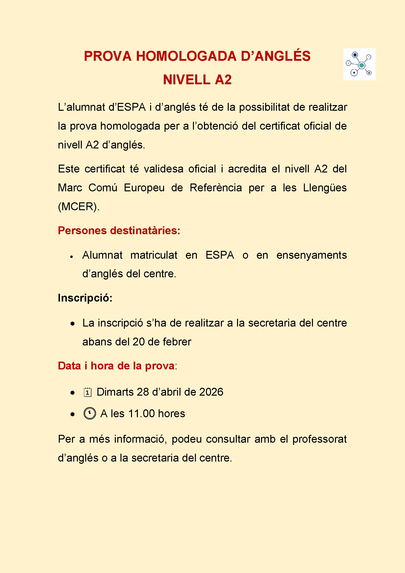 o j: Intercanvi comunicatiu en llengües estrangeres: B2 Anglés (dimecres 3ª i 4ª)