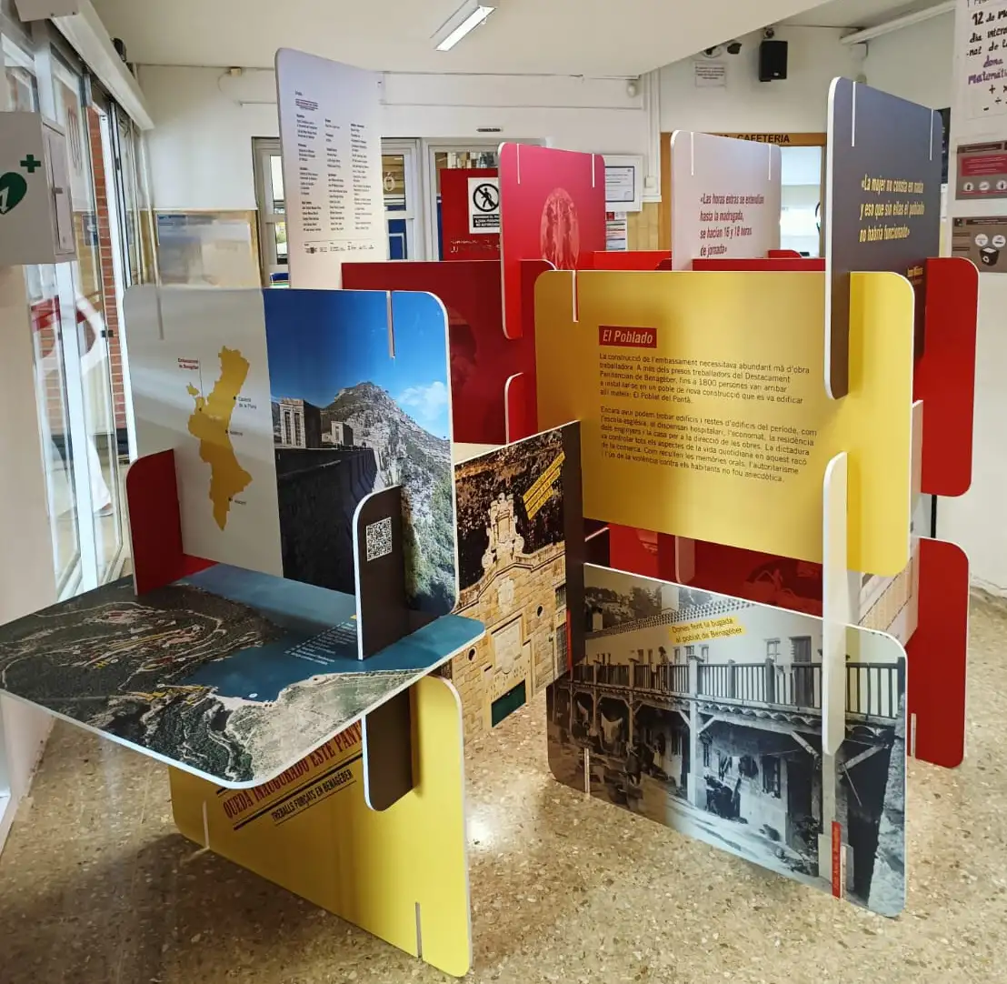 Durant la passada setmana, del 2 al 6 de febrer, la comunitat educativa va poder visitar, a l’entrada de l’edifici principal del nostre centre, la instal·lació expositiva «Queda inaugurado este pantano. Treballs forçats en Benagéber».