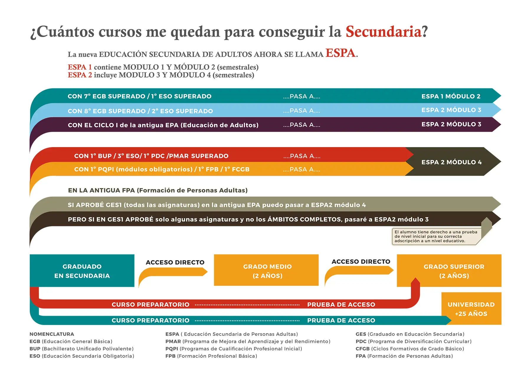 ¿Cuántos cursos me quedan para obtener la ESO? Si estás pensando en retomar tus estudios y conseguir el Graduado en Educación Secundaria, esta información es para ti. Actualmente, la Educación Secundaria de Personas Adultas se denomina ESPA y se organiza en dos niveles, cada uno con dos módulos semestrales: Según los estudios que tengas superados … Leer más