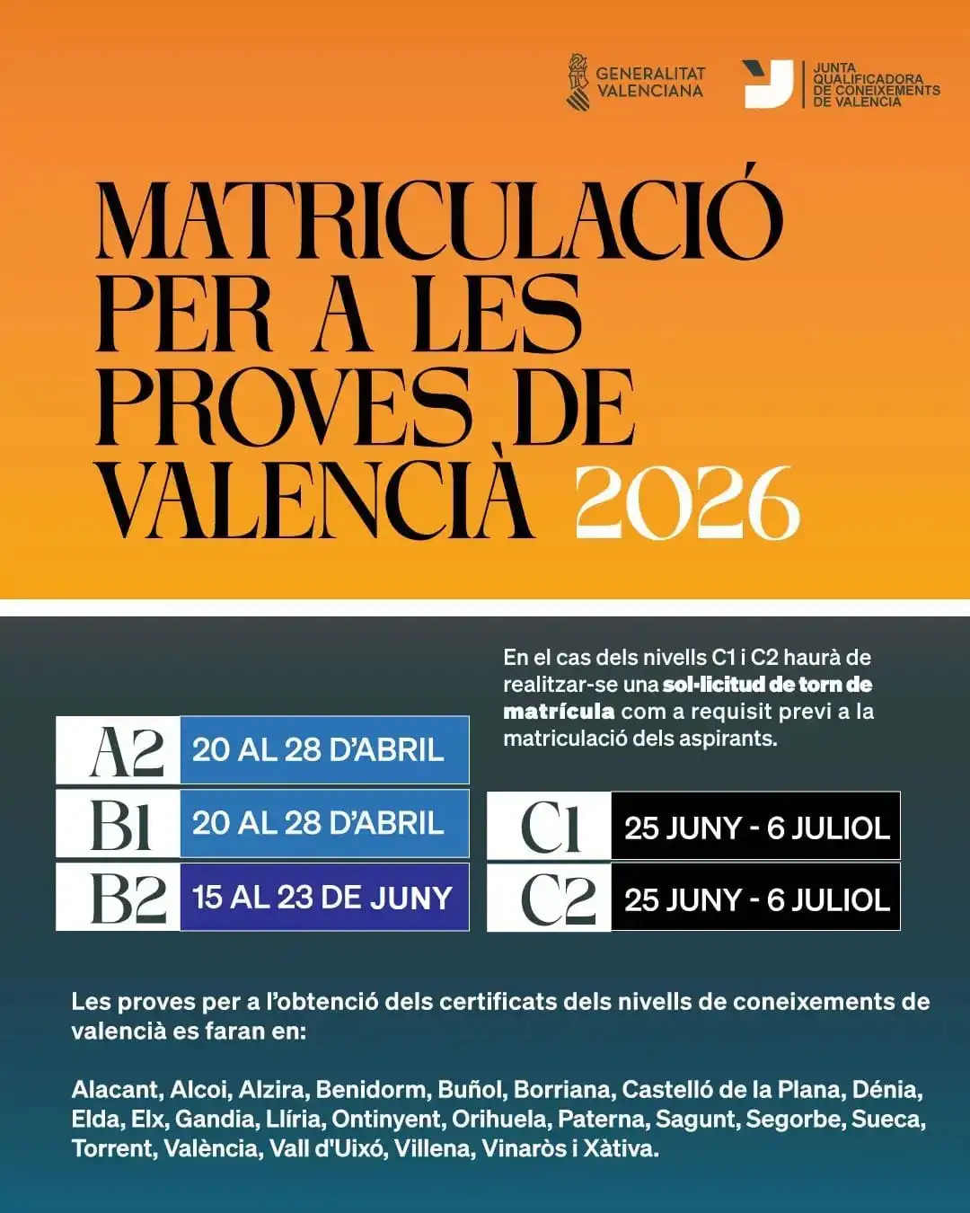 Cap aspirant està matriculat d’ofici. Les persones que volen acreditar el coneixement de valencià de nivell A2 i B1 han de pagar la taxa corresponent.