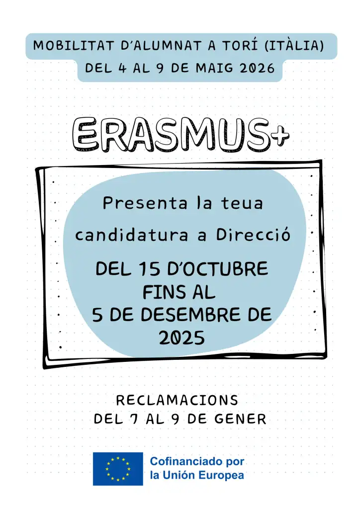 The publication of the final lists, as well as any other programme-related information not available on this website, can be consulted on the centre’s Erasmus+ notice board.