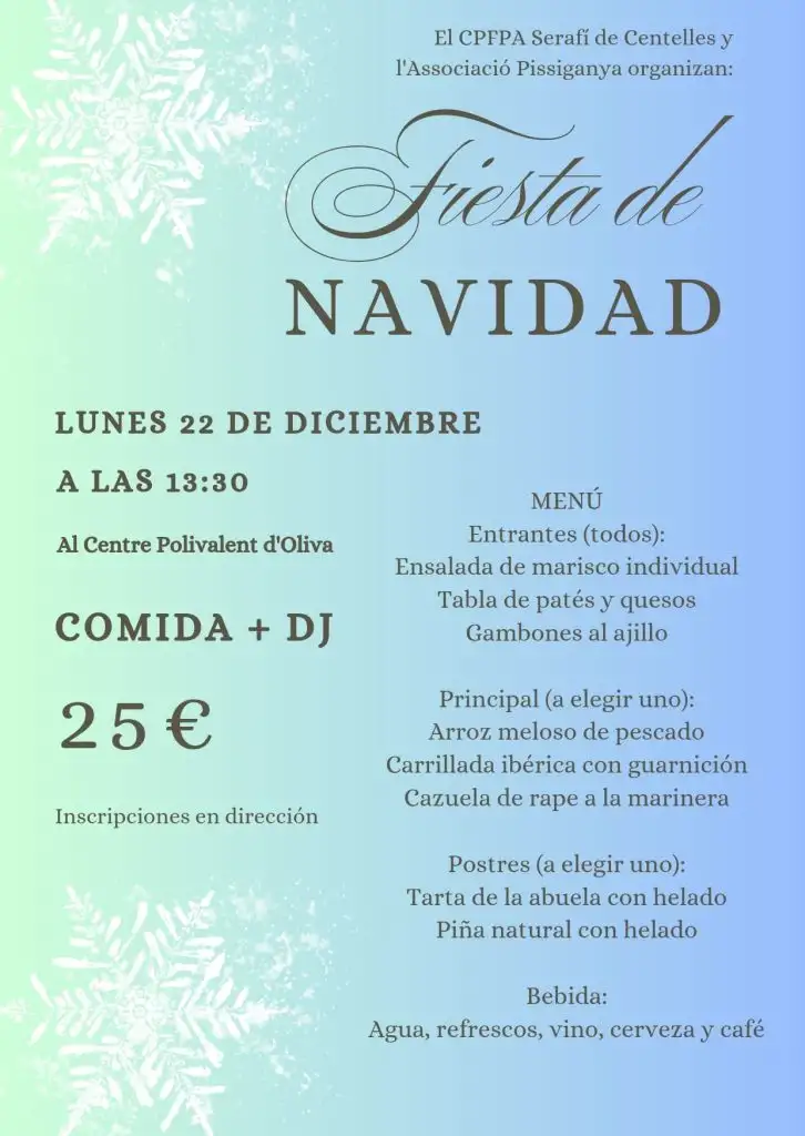 On Monday, 22 December, the CFPPA Serafí de Centelles will celebrate Christmas with a special day of Christmas Workshops, featuring creative activities, wellbeing sessions and Christmas card activities throughout the morning.