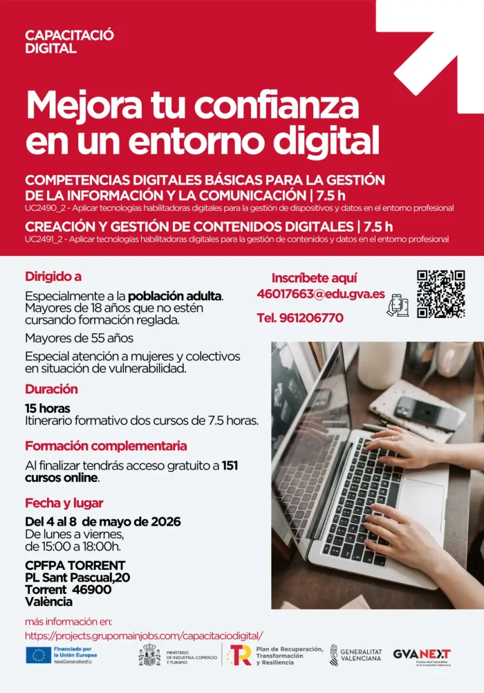 📍 Lugar: Centro de Formación de Personas Adultas de Torrent, aula biblioteca (Plaza Sant Pasqual, 20)