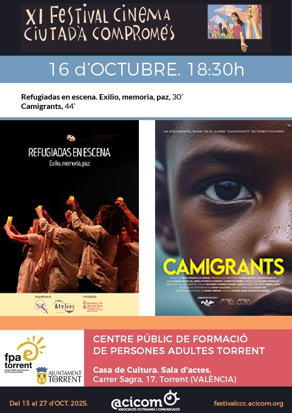 En el marc de les Jornades d’Acollida i la Multiculturalitat, l’Escola d’Adults de Torrent, amb el suport de l’Ajuntament de Torrent, serà una de les seus del festival i acollirà la projecció de dos documentals que reflexionen sobre migració, memòria i drets humans: