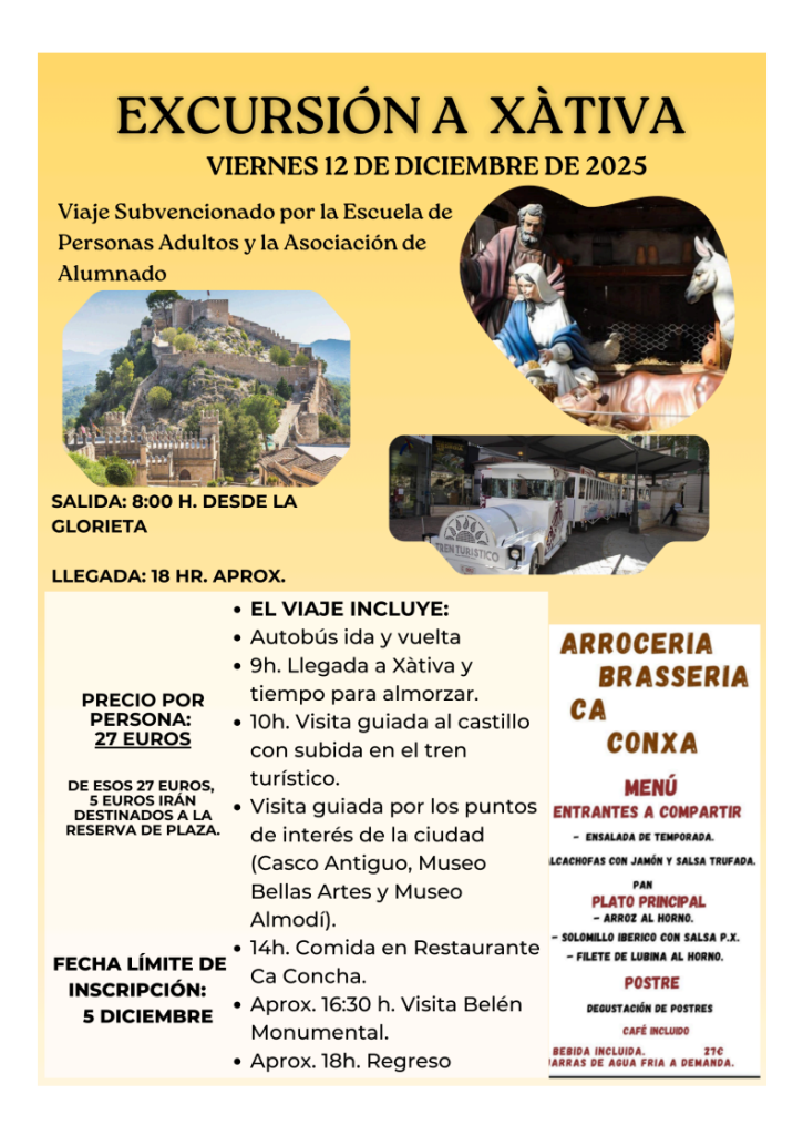 VIATGE CULTURAL A XÀTIVA EL DIA 12 DE DESEMBRE DE 2025