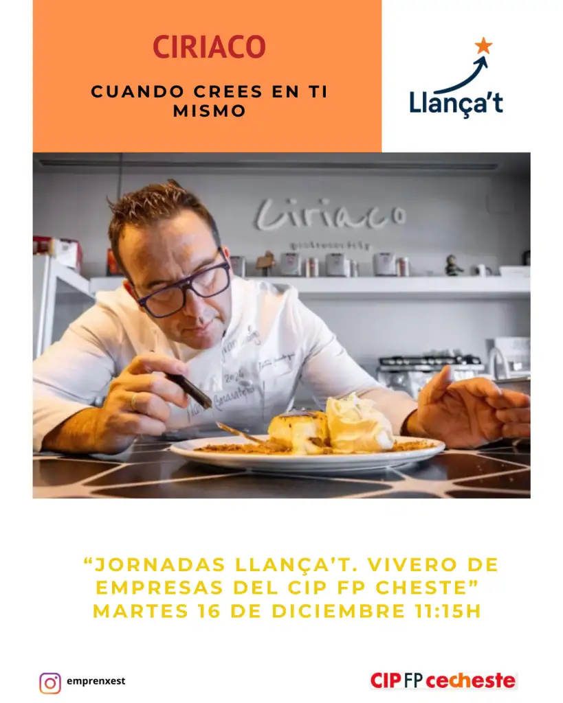 Per a això el dimarts 16 de desembre inaugurarem les jornades amb la ponència del @ceeivalencia sobre màrqueting i marca personal, per a continuar amb la presència de @by_ciriaco , emprenedor que ens parlara de la importància de creure en un mateix.