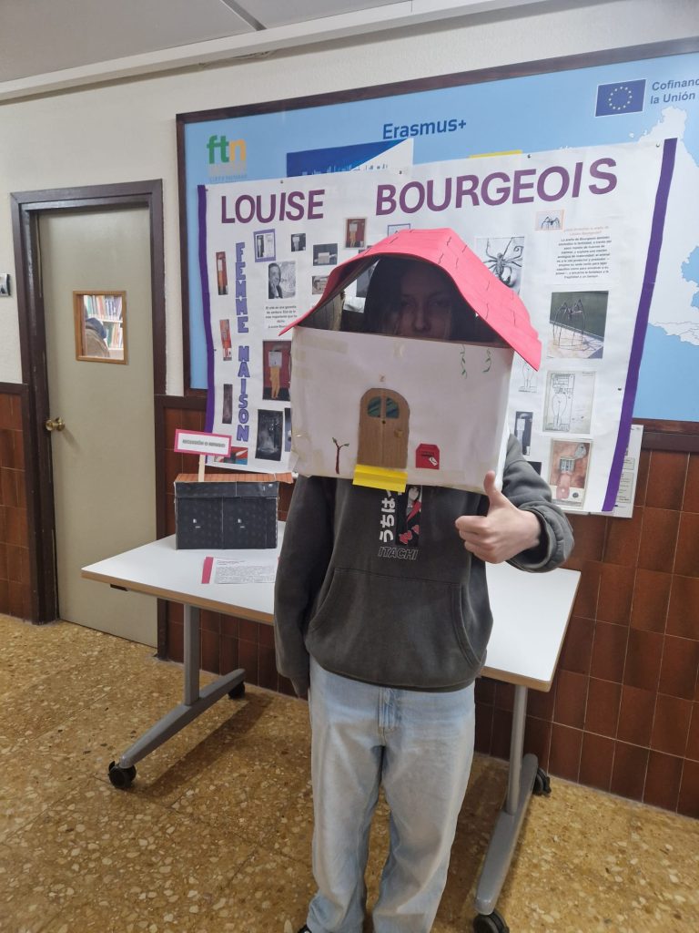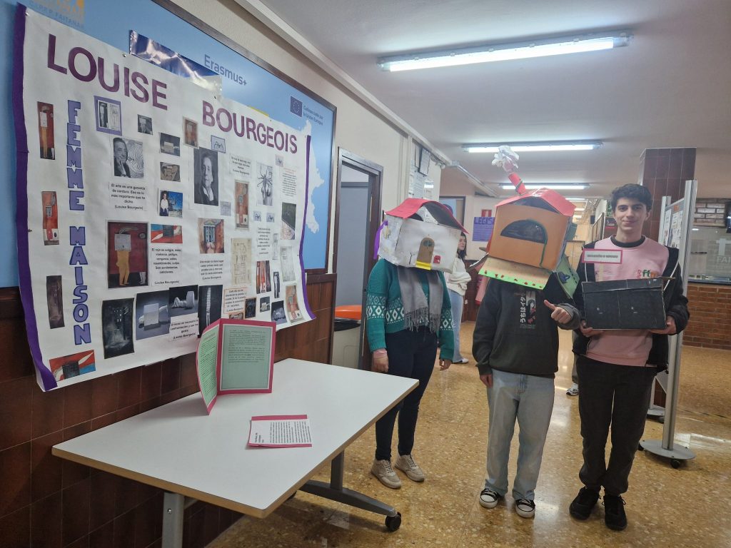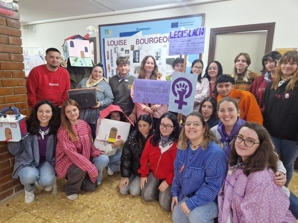 Con motivo de la celebración del 8 de marzo Día Internacional de la Mujer, el alumnado ha participado en diversas actividades, una de ellas relacionada con la obra de Louise Bourgeois, “Femme Maison o Mujer Casa”, que son ilustraciones que muestran el cuerpo desnudo de diferentes mujeres, cuyas cabezas y cuerpos han sido reemplazados por edificios y casas. La actividad consistía en confeccionar casas con cartones, y se expusieron en la entrada principal, en un espacio que se habilitó para un Photocall. Por otro lado, el grupo de 1GSAN ha realizado una Performance denominada “Trenquem cadenes, construïm futur amb pas de dona”, tratando temas como el voto femenino (1951), legislación sobre igualdad, educación, ocupación, empoderamiento, sororidad entre mujeres. Estas actividades generan debates interesantes sobre la perspectiva de género, el papel de la mujer en la sociedad, el hogar como un lugar esencialmente femenino, que inevitablemente siempre ha rodeado a la mujer, y que ha sido su lugar de realización personal, aislándola del resto.