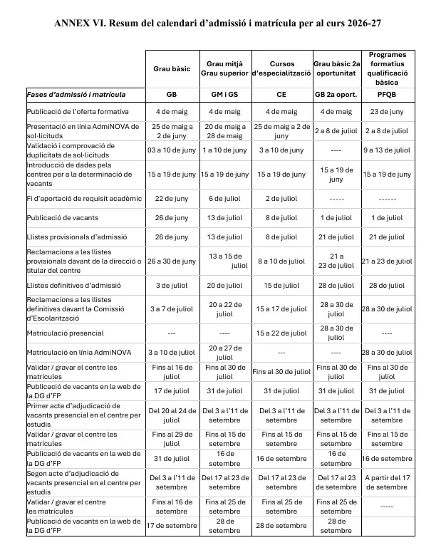 - CFGM I CFGS: Fins al 6 de juliol