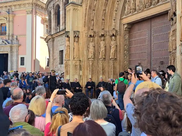 Nuestra estimada Celia Cano, Orientadora y Coordinadora del Equipo de Mediación de la IES Violant de Casalduch, vino acompañada de 9 profesores y profesoras y un grupo de 90 alumnos, alumnado de intercambio francés, alemán y su grupo OLIMPO.