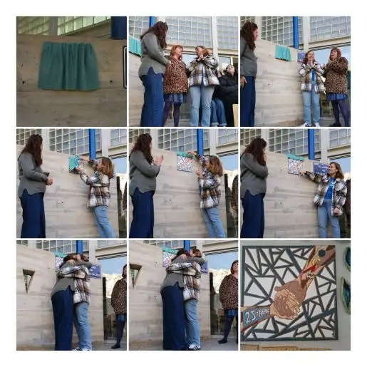 A continuación, Inma Sánchez, nuestra directora, les dirigió unas palabras de bienvenida y agradecimiento y descubrió una placa, que quedará por siempre jamás, en recuerdo de la unión de los dos centros. Zaida Aleixandre, profesora de Educación Plástica Visual y Artística, ha realizado esta preciosa placa de cerámica, ¡muchas gracias Zaida!