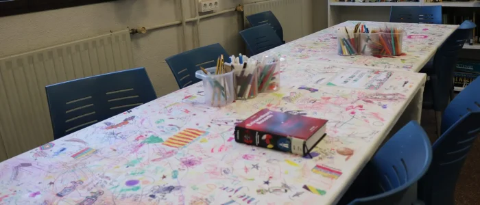 • El “Espai creatiu” amb taules folrades de paper, llibres d’art i material de pintura perquè els alumnes puguen donar curs a la seua creativitat.
