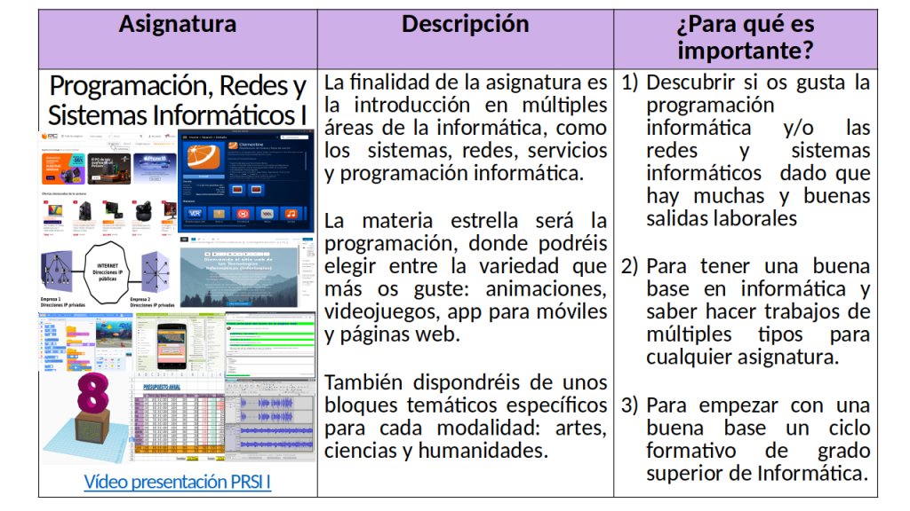 Nuestra asignatura de Informática para el bachillerato, no sólo está orientada a los ciclos formativos de la familia profesional de Informática y Comunicaciones, también ofrecemos una extensa diversificación curricular con los contenidos históricos de la materia para hacerla versátil, completa y útil para todos los perfiles de alumnado.