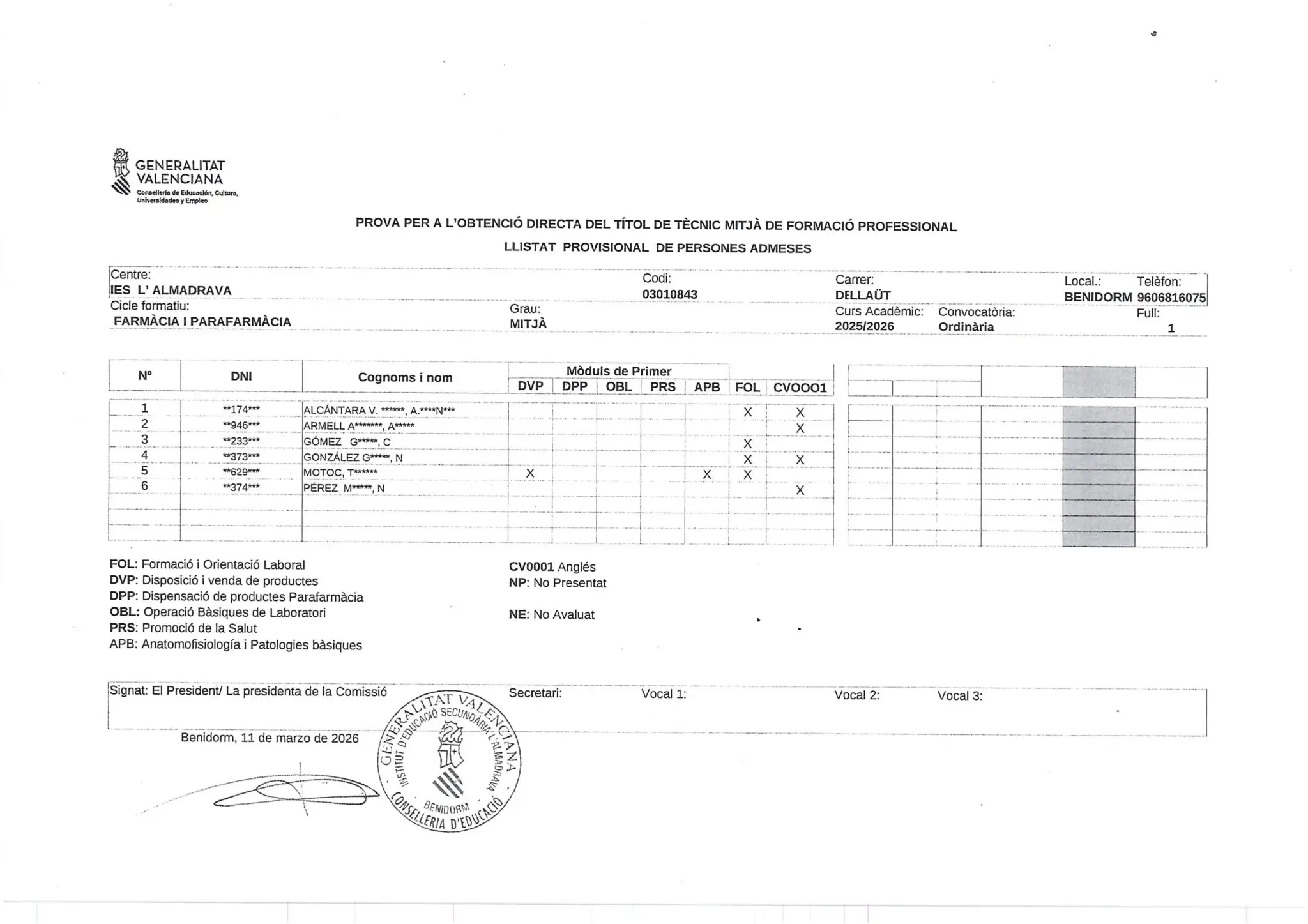 Es publiquen els admesos provisionals per a les proves lliures de Cicles Formatius