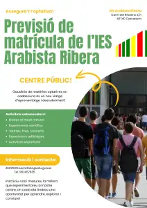Atenció: S’amplia el termini fins les 23:59h del dijous 16 d’abril, dia de les portes obertes de l’IES Arabista Ribera. Podeu repetir el formulari, però recordeu que només serà vàlid l’últim que envieu.