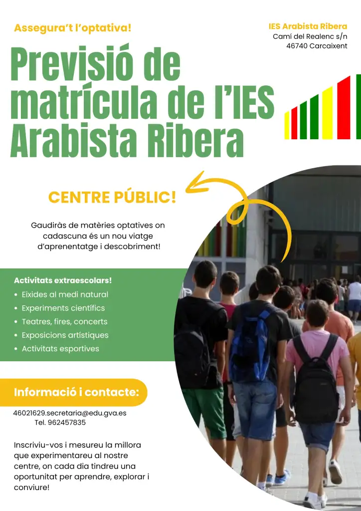 El formulari és orientatiu per a fer una previsió, però serà vinculant en la matrícula oficial. Qualsevol canvi a l’hora de formalitzar-la haurà de ser aprovat per la direcció del centre, prèvia petició per escrit de la família (model de sol·licitud disponible a Secretaria). Per tot això, l’alumnat que faça la previsió de matrícula tindrà preferència en la tria d’optatives*.
