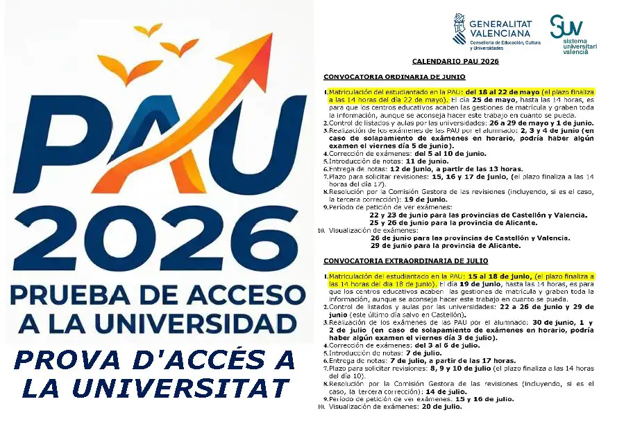 PAU 2026. Calendari