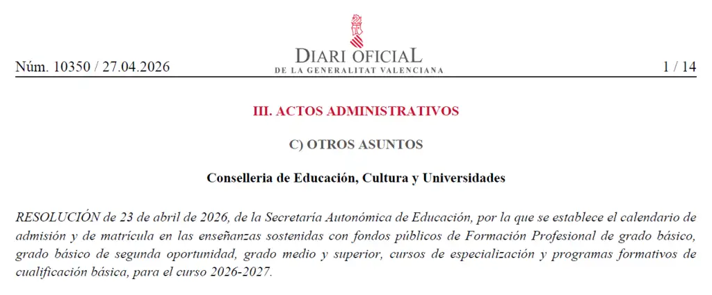 Presentación online en AdmiNOVA de solicitudes de admisión a ciclos de Grado Medio y Superior, del 20 al 28 de mayo.