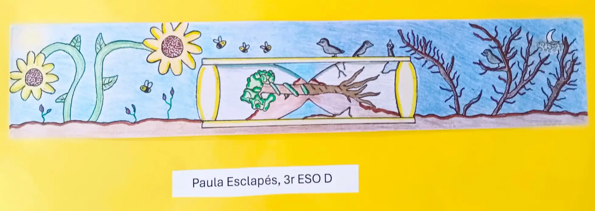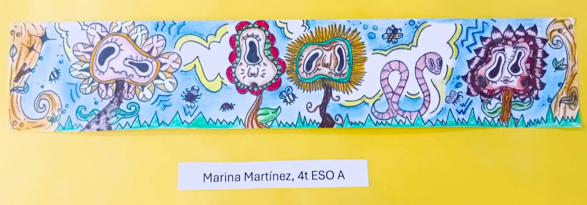 La segona classificada ha sigut Paula Esclapés, de 3r ESO D, i la guanyadora, Marina Martínez, de 4t ESO A. El seu disseny, que ens ha sorprés pel seu estil expressiu i personal, començarà a dibuixar-se per l’alumnat d’Expressió Artística en una de les parets de l’hort del centre en les pròximes setmanes. Enhorabona!