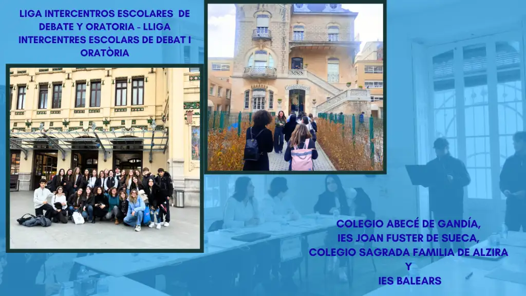 Els participants de la lliga pertanyen a quatre centres de la província de València: Col·legi Beceroles de Gandia, IES Joan Fuster de Sueca, Col·legi Sagrada Família d’Alzira i IES Balears de València. Els equips han debatut la moció “Hauria de ser obligatori el servici miliar per als jóvens de 18 anys”.