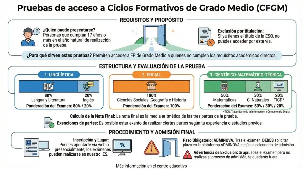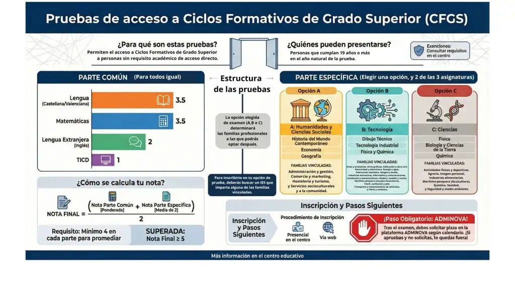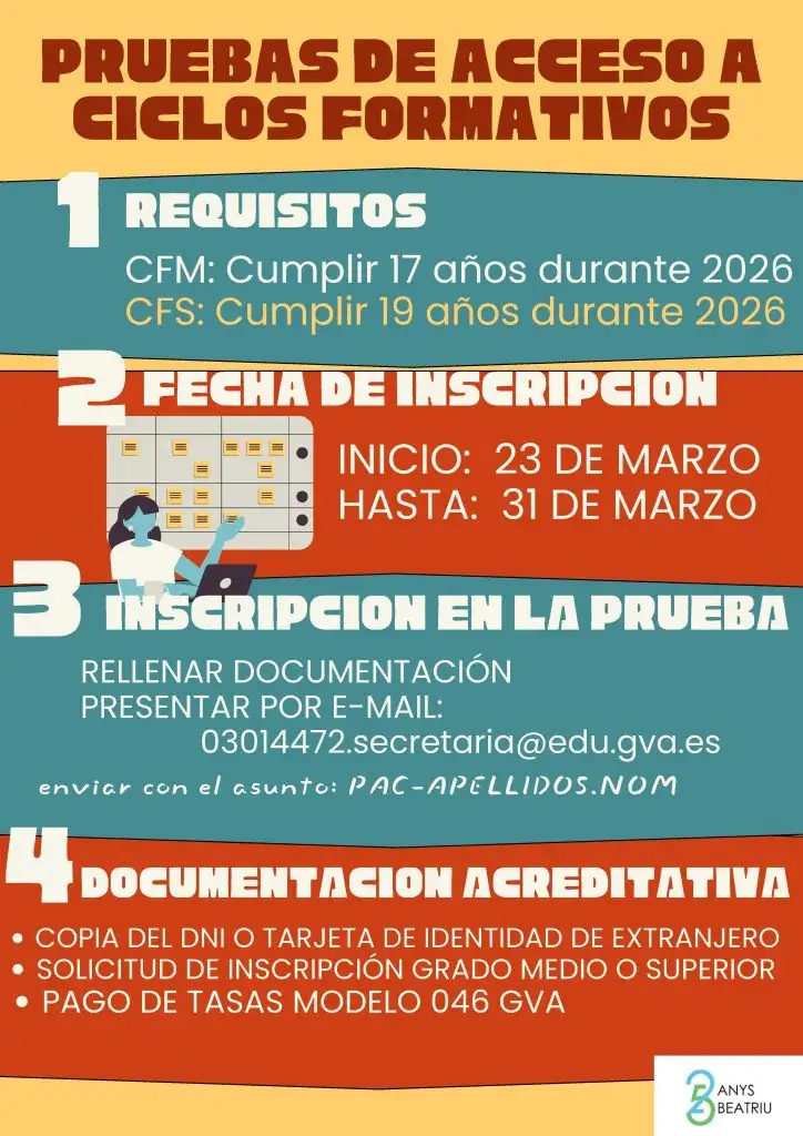 Las pruebas se realizarán en el aula POL3 y POL4 (2.º piso del edificio de ciclos formativos).