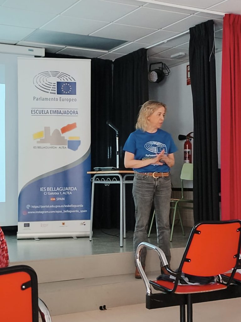 El IES Bellaguarda participó una vez más en la jornada contando su experiencia en la gestión y realización de los programas Erasmus+ y del Programa Escuelas Embajadoras del Parlamento Europeo.