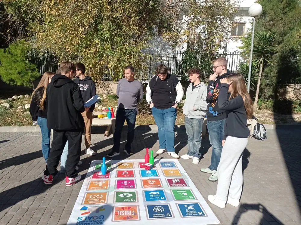 El cinquè dia vam fer una presentació sobre un dels nostres objectius Erasmus: “la sostenibilitat”, els vam mostrar quines accions fem al centre per tal de contribuir a aquest objectiu. A continuació, vam fer una activitat sobre els ODS, a través de diferents jocs, juntament amb els alumnes polonesos; per acabar el matí tots els alumnes i professors visitants anàrem a “l’aula de cuina” a aprendre a cuinar una paella. Per la vesprada férem una activitat lúdica en un local de matalassos elàstics a Finestrat.