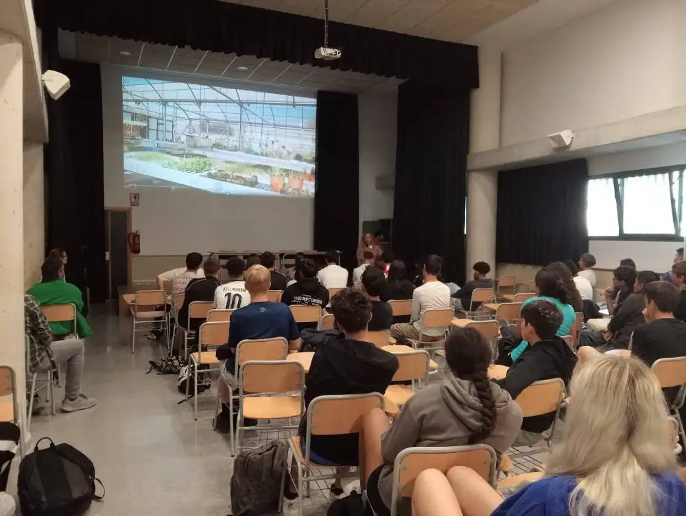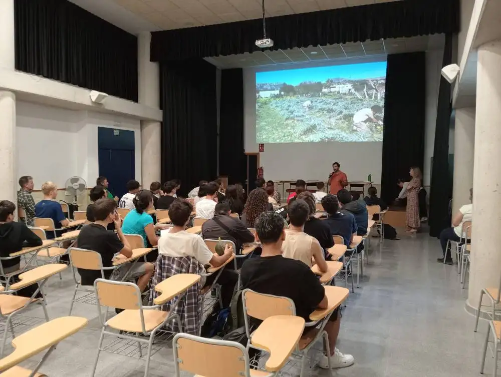 A l’acte va assistir tot l’alumnat de CCCFF d’Agroecologia, que en un futur podrà beneficiar-se del programa i que va poder escoltar de primera mà sobre les experiències viscudes.