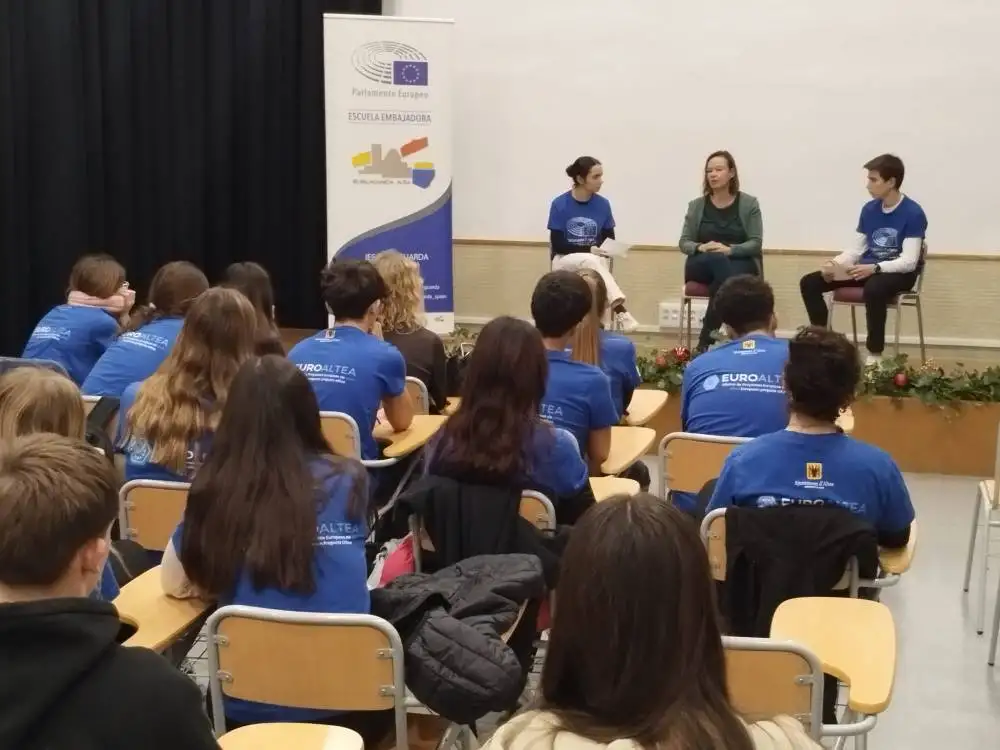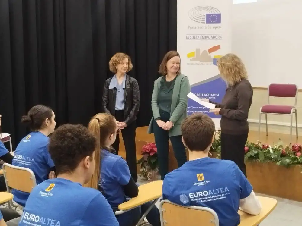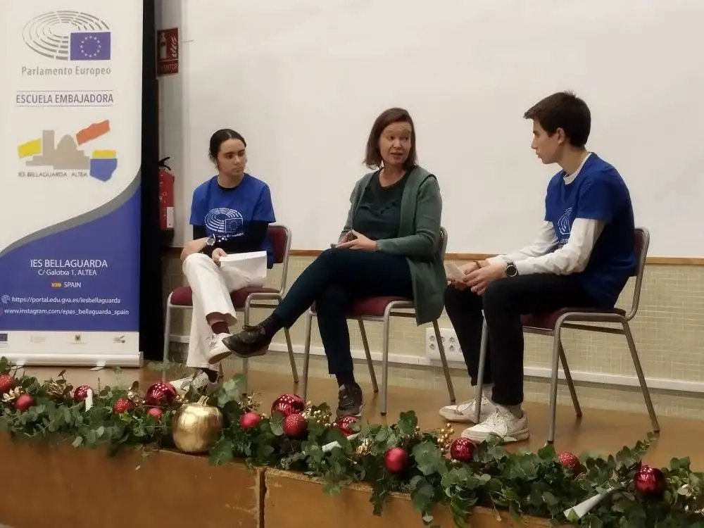El 12 de Desembre de 2025, els joves ambaixadors del projecte EPAS (Escoles Ambaixadores del Parlament Europeu) de l’IES Bellaguarda d’Altea vam tenir l’oportunitat de poder rebre la visita de l’eurodiputada Leire Pajín, nascuda al País Basc i criada a Benidorm.