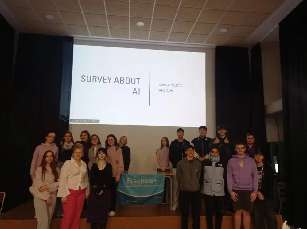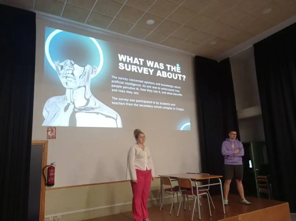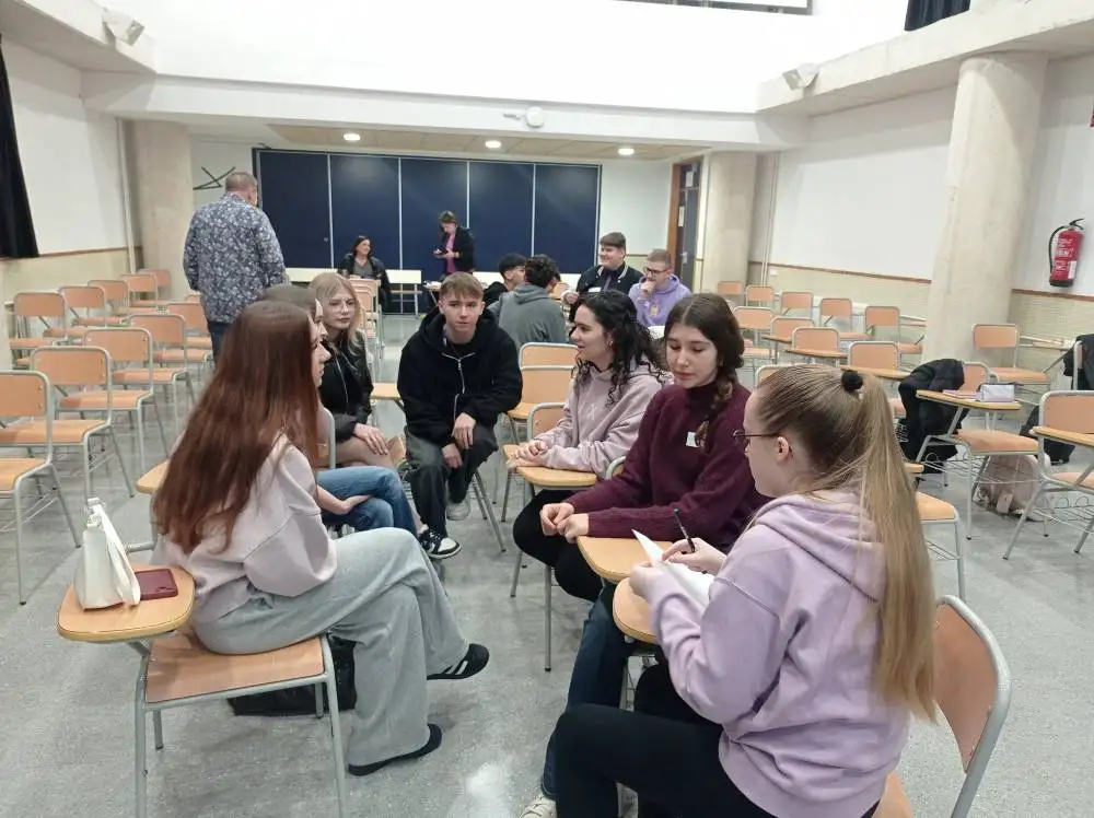 Al següent dia, tots junts vam treballar el projecte sobre la IA, ambdós centres vam presentar els resultats sobre l’enquesta que havíem treballat anteriorment, realitzades pels alumnes del Bellaguarda i del polonesos, això va comportar un debat sobre el futur de la IA i les oportunitats que aquesta podria oferir per a un futur millor. També, participarem tots junts en la celebració del 25N, en la plaça de l’Ajuntament, on vam ser part de l’homenatge a les víctimes per violència de gènere.