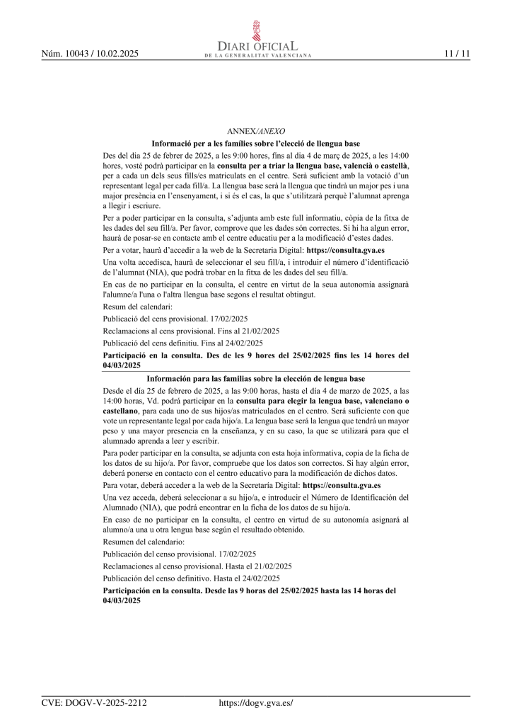Informació per a les families sobre la elecció de la llengua base