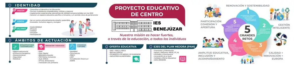 Continúan las mejoras en rotulación, acceso y visibilización de la identidad del IES Benejúzar. Se ha instalado una lona informativa con la intención de compartir con toda la comunidad educativa el PEC del IES. La difusión de los documentos del centro es una obligación y una necesidad porque solo si conocemos dónde estudiamos podremos ser parte del proceso educativo.