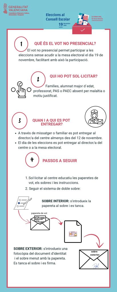 Des d’avui 12 de novembre i fins al 19 de novembre ja hi ha disponible el vot no presencial per a les famílies.