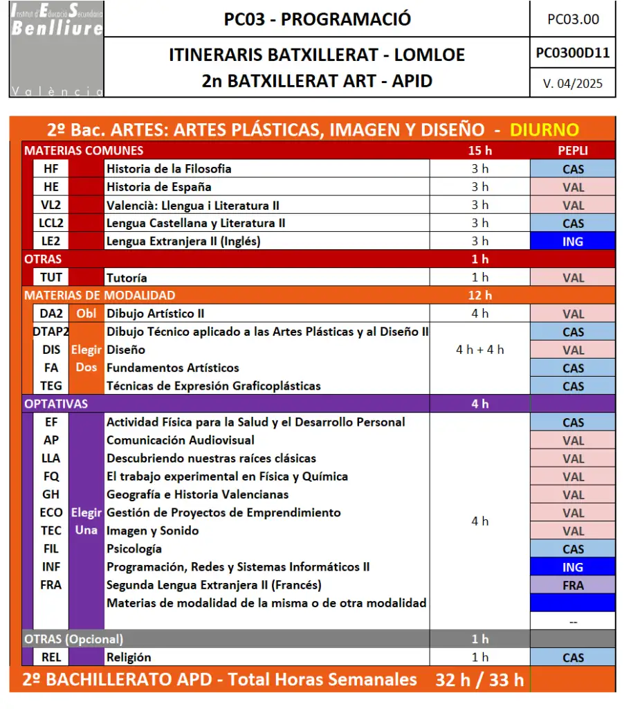 2n Batxillerat ARTS – Vía Arts Plàstiques, Imatge i Disseny