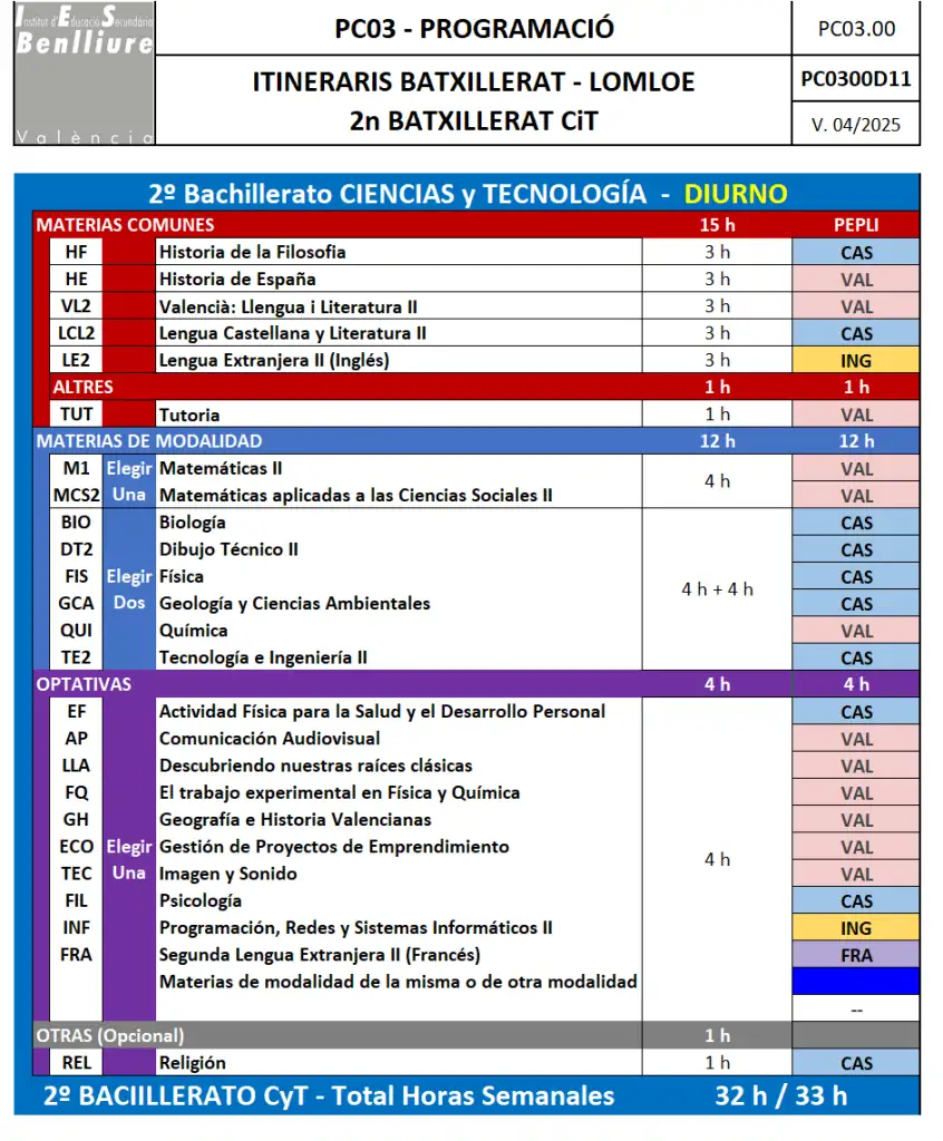 2n Batxillerat CIÈNCIES i TECNOLOGÍA