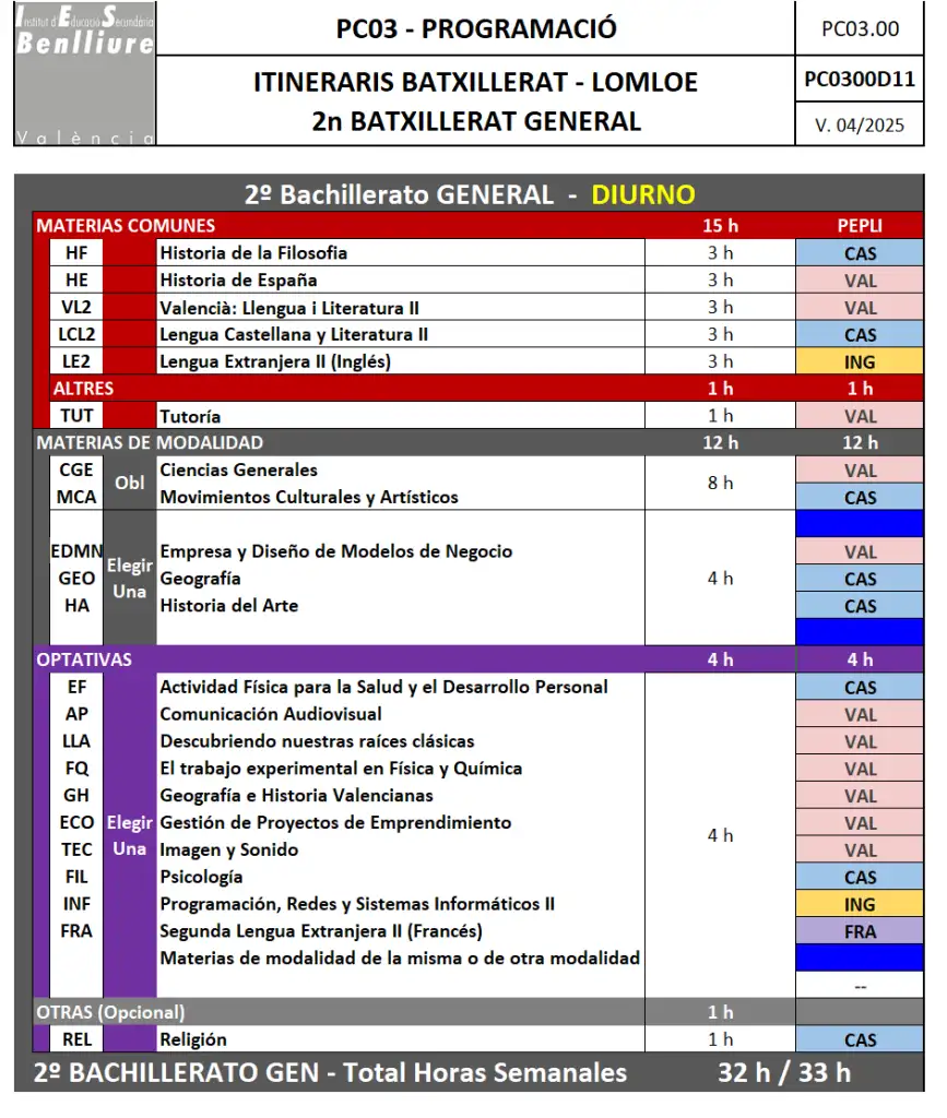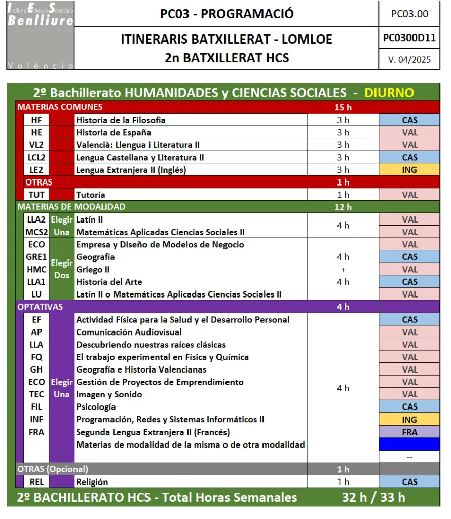 2n Batxillerat HUMANITATS i CIÈNCIES SOCIALS