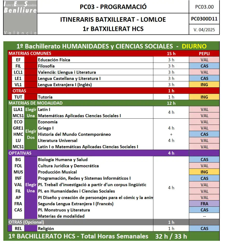1r Batxillerat HUMANITATS i CIÈNCIES SOCIALS