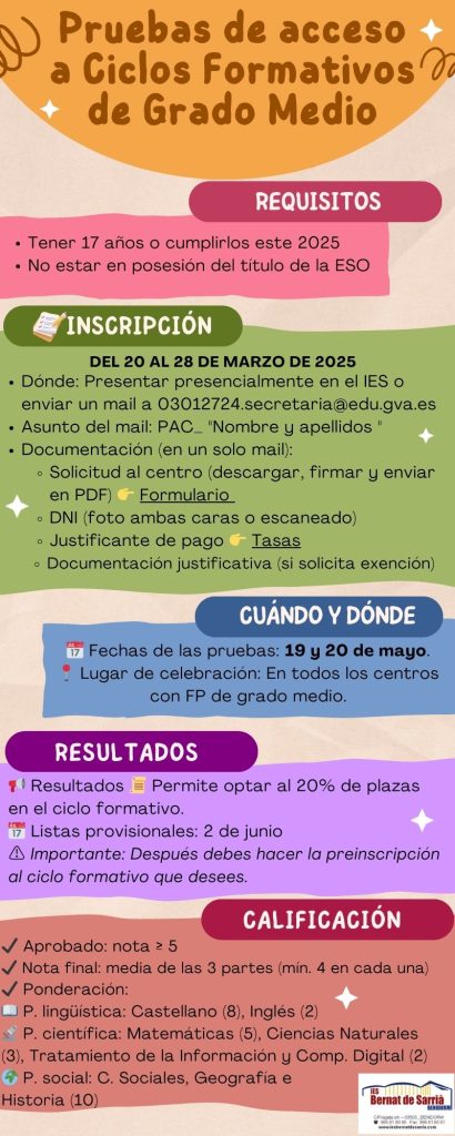 Pruebas de acceso a ciclos formativos