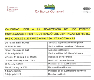 Els departaments d’Anglés i Francés de l’Institut han organitzat una excursió a Benidorm, prevista per al divendres 02/05/2025. L’objectiu és passar una jornada de convivència en un entorn on resideixen molts expatriats de països anglòfons i francòfons. S’han dissenyat diversos reptes i activitats que l’alumnat durà a terme durant les hores que passarem a Benidorm. … Llegir més