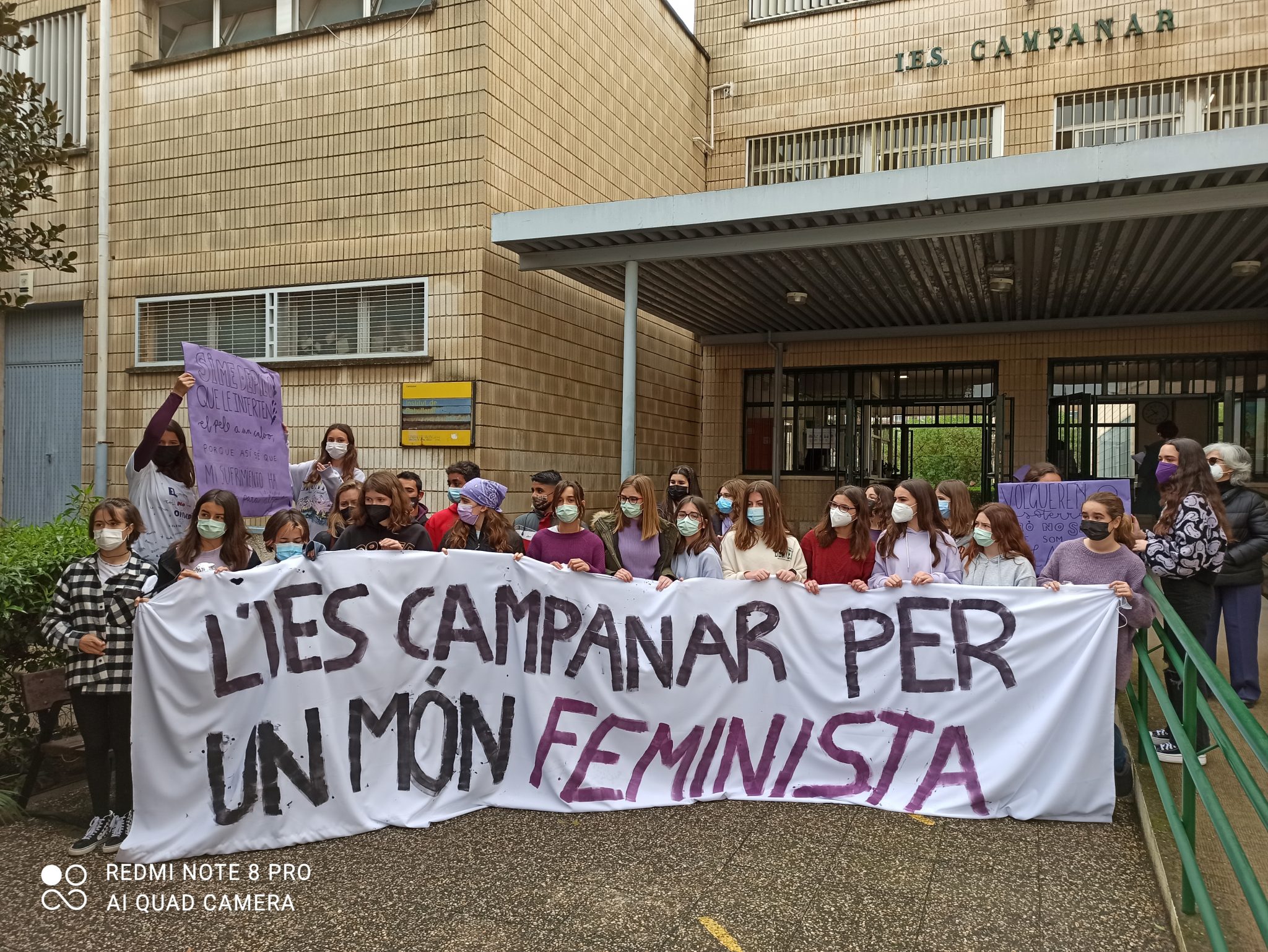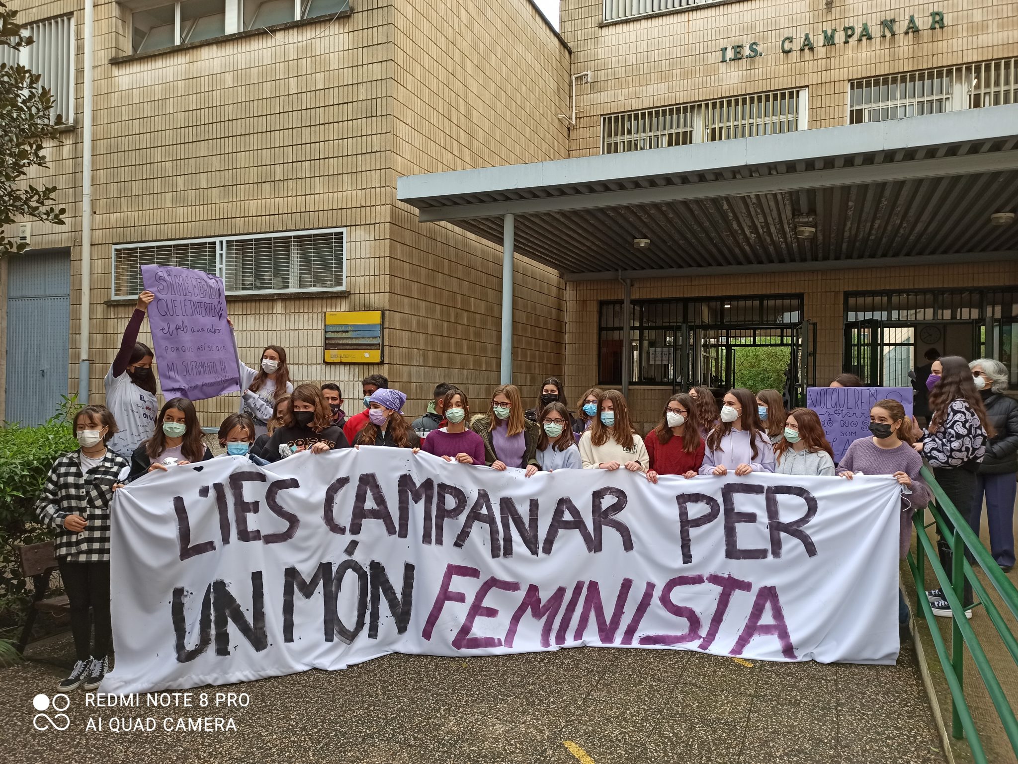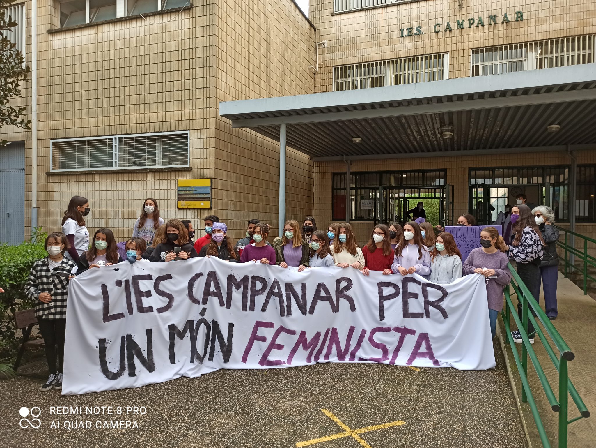 Hui hem celebrat el dia de la dona amb una manifestació pel barri de Campanar i la lectura d’un manifest preparat per dos alumnes de batxiller.